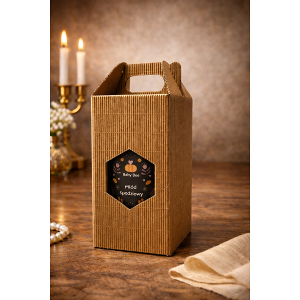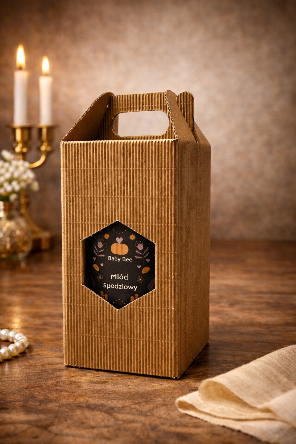 Tradycyjny miód z pasieki Baby Bee 🐝 w dużej gramaturze 1000 g, zapakowany elegancko i z dbałością o każdy detal.
