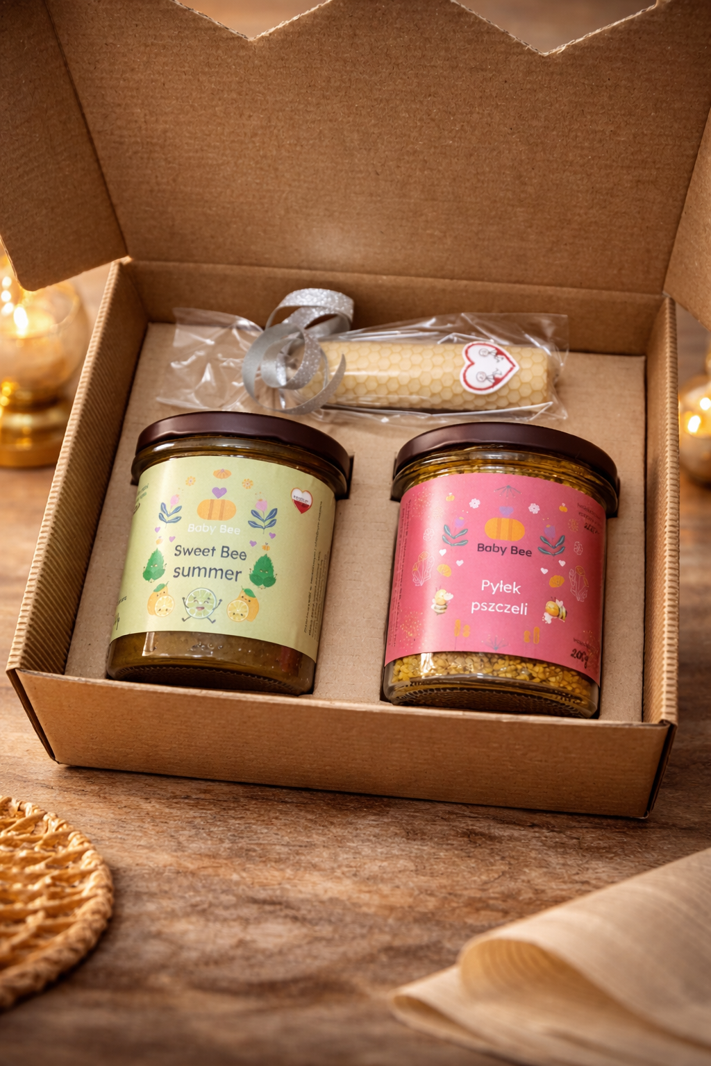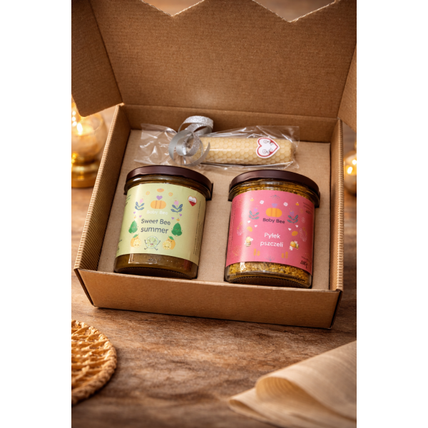 Produkty z naszej pasieki Baby Bee 🐝 uzupełnione naturalną świecą z wosku pszczelego tworzą zestaw, który działa na zmysły.